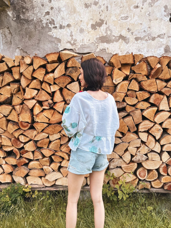 Lniana bluzka w niebieskie róże